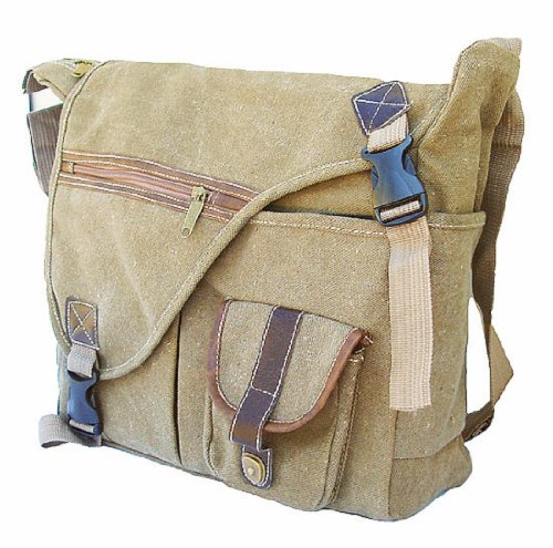 Military Inspired Canvas Messenger Bag Backpack Khaki Green